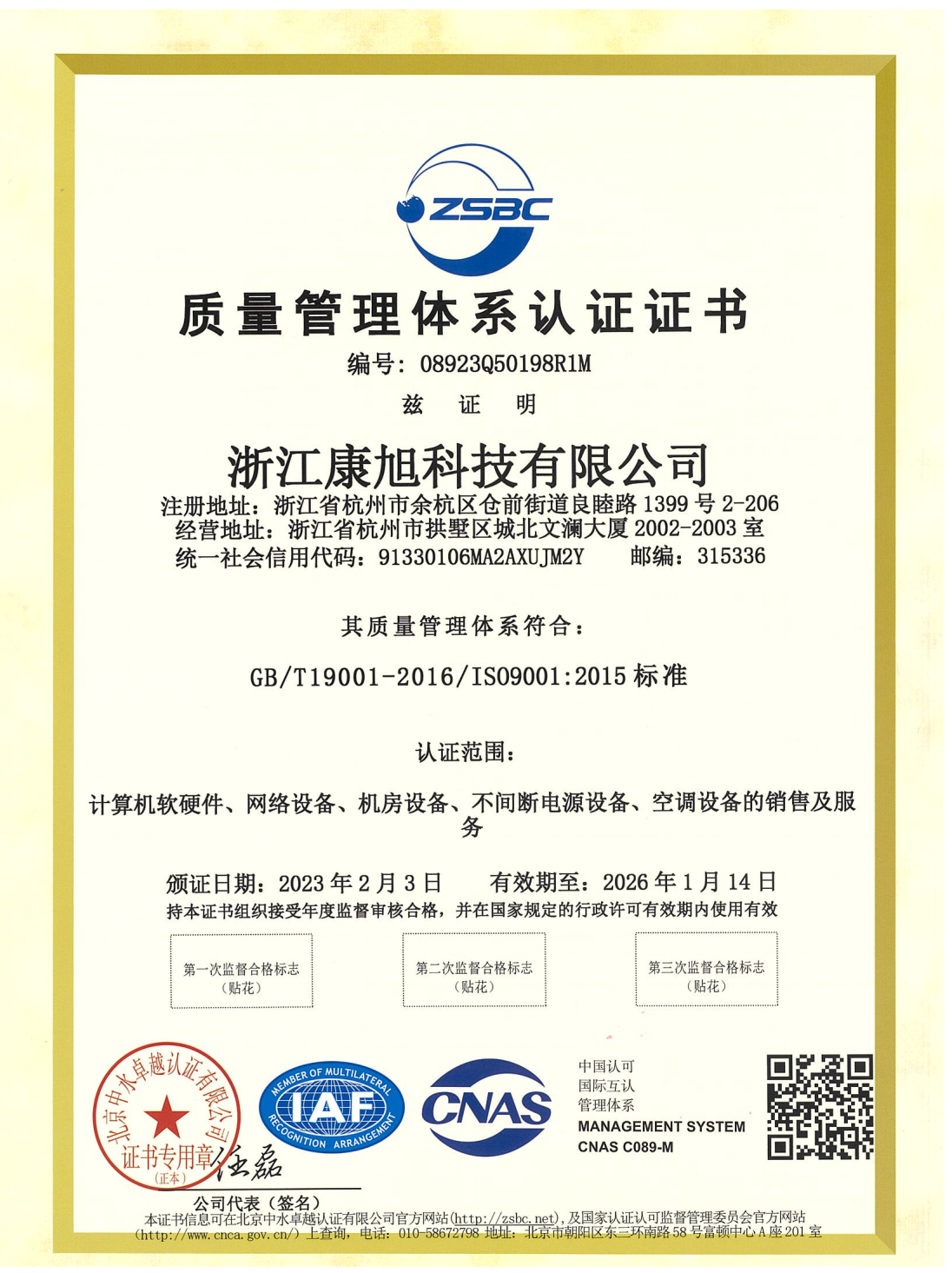 質(zhì)量管理體系認(rèn)證證書